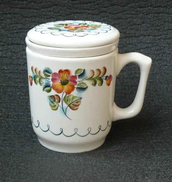 Сочетая в себе экологическую чистоту материала и яркий рисунок в виде цветка красно-зеленого оттенка. Кружка состоит из: крышки, керамического сита для заварки чая и трав, керамической кружки. Эта кружка будет хорошим дополнением на вашем кухонном столе и из которой Вам будет очень приятно наслаждаться изысканным вкусом чая, заваренных трава, кофе.