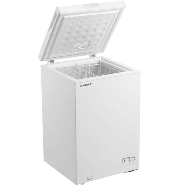 Устройство KRAFT BD (W)-135QX действует с мощностью заморозки 8 кг/сутки при потреблении 210 кВтч/год. При отключении света морозильник способен сохранять холод до 25-ти часов. Предусматривается наличие режима суперзаморозки до -24°C. Комфортной эксплуатации способствует наличие механической панели управления.