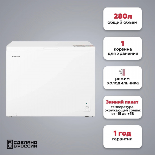Морозильный ларь Kraft BD (W)-280RX станет отличным приобретением для квартиры, дома, отеля, офиса, либо промышленного помещения.
