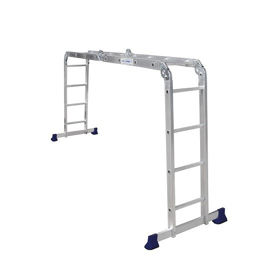 Лестница с трансформирующейся конструкцией способна принимать разные положения. Лестницы данной серии имеют очень малый вес, к тому же состоят из четырех секций на шарнирных самоблокирующихся соединениях, благодаря этому могут складываться в необходимую для работы конструкцию: приставную лестницу, стремянку, подмости, Г-образную лестницу для установления на уступы.