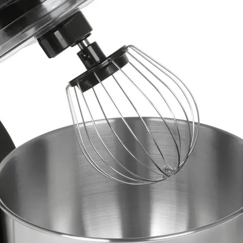 Прибор легко справится с задачами замешивания теста и взбивания ингредиентов. Чаша из нержавеющей стали объемом 5,1 л имеет защитную крышку с отверстием для добавления ингредиентов. Насадка в виде крюка предназначена для замешивания теста для всех видов домашней выпечки и смешивания сухих ингредиентов. Насадки лопатка и венчик применяются для приготовления соусов, взбивания сливок, жидкого теста, кремов. Миксер имеет 6 скоростей работы. Оснащен удобным переключателем. Планетарная система смешивания. Автоматически вращающаяся чаша позволяет взбивать и замешивать ингредиенты без использования рук. Откидной механизм позволит легко установить или убрать чашу из миксера. Благодаря резиновым ножкам-присоскам прибор устойчиво стоит на поверхности стола во время работы. Планетарный миксер прост в уходе и удобен в использовании.