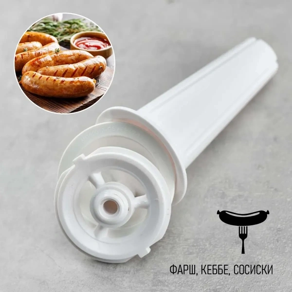 | Комплектация | документация, загрузочный лоток, насадка для кеббе, насадка для колбасы, нож, перфорированный диск крупный, перфорированный диск средний, толкатель, шнек |