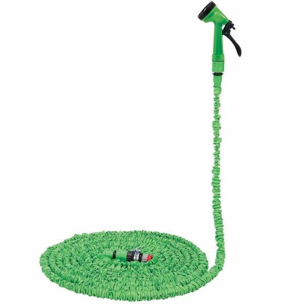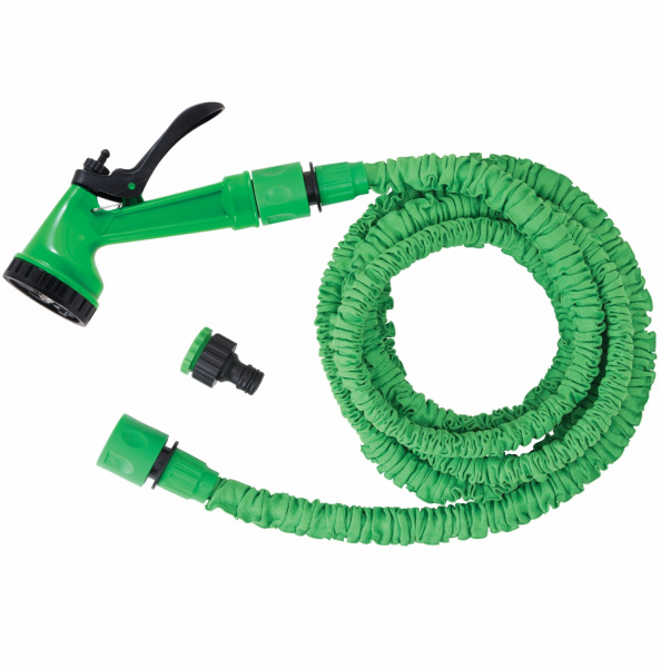 Способность шланга сжиматься и растягиваться от 2.5 до 7.5 м обеспечивает комфортную работу и компактность при хранении.