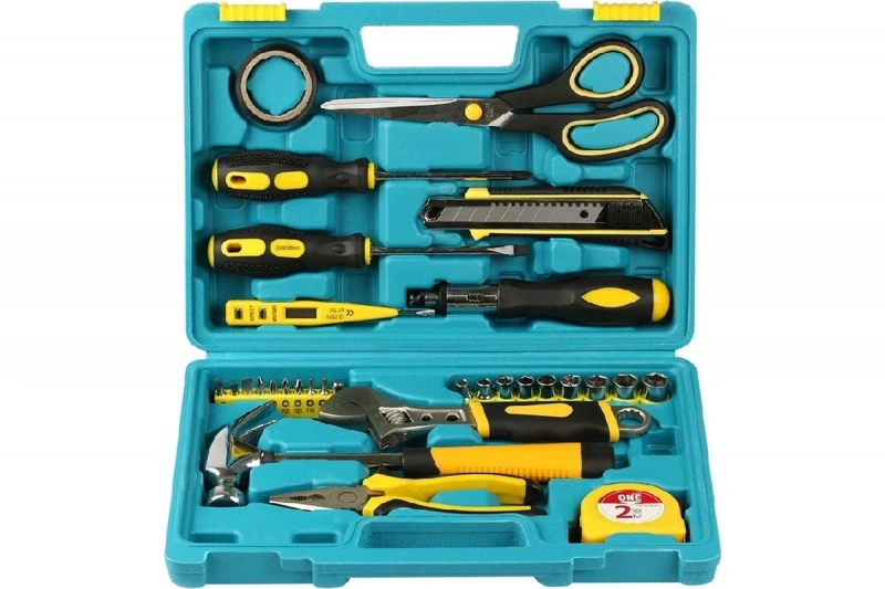 Набор инструментов для домашнего мастера содержит наиболее применяемые инструменты, если требуется забить гвоздь, перекусить проволоку, завернуть саморез, отрегулировать мебель. Набор поставляется в удобном пластиковом чемодане для простоты хранения и переноски.