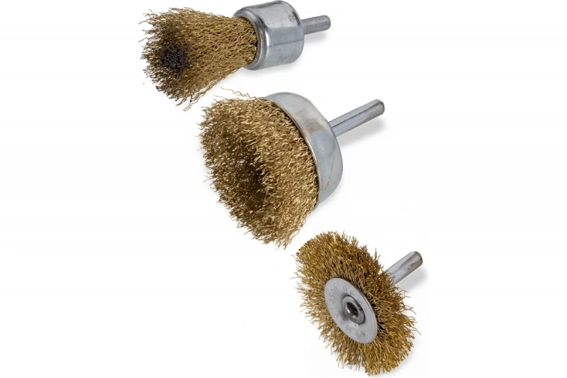 Щетки зачистные используются для зачистки различных поверхностей от старой краски, лакокрасочных покрытий, ржавчины и др. Имеют цилиндрический хвостовик, для фиксации в цанговом патроне. Изготовлены из инструментальной стали