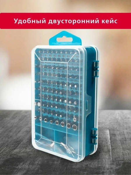 Набор бит представляет собой широкий ассортимент как популярных так и редко встречающихся элементов, является наиболее универсальным в быту и в ремонте электроники, мебели, и т.д. Хромованадиевая сталь обеспечивает прочность и длительный срок службы при использовании в подходящем по калибру крепеже.