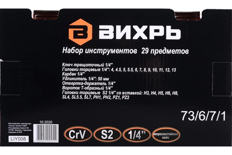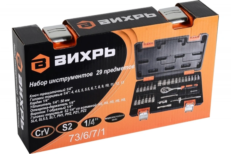 Набор инструмента ВИХРЬ предназначен для ремонта автомобилей, мотоциклов, садовой и другой техники. Подходит как для использования на станциях технического обслуживания, так и в бытовом применении дома или на даче. Инструмент изготовлен в соответствии с международными стандартами.