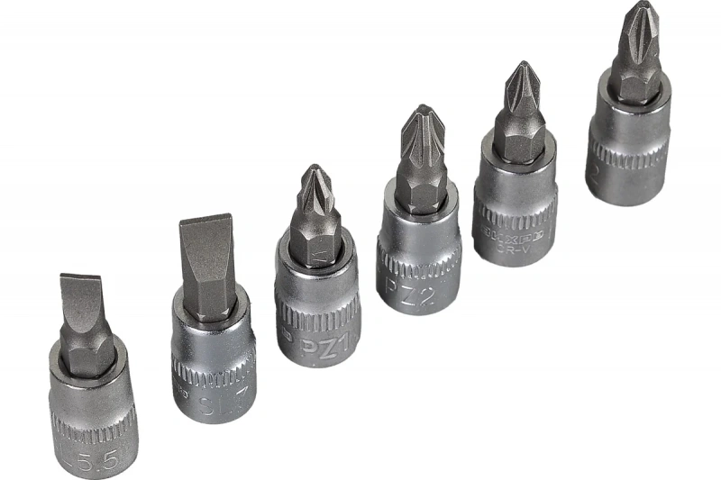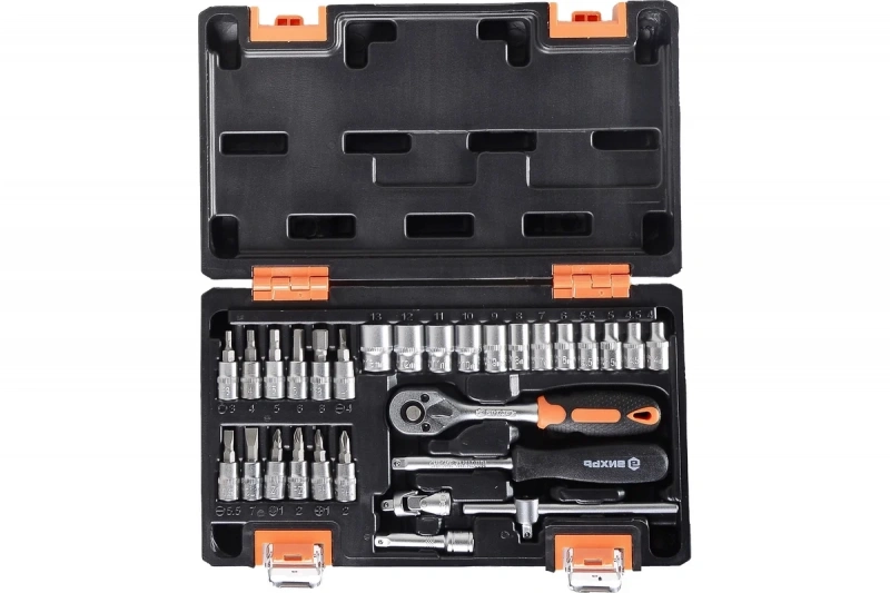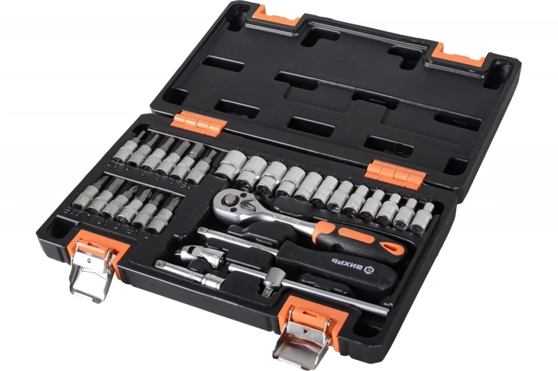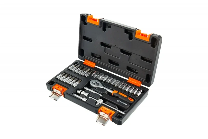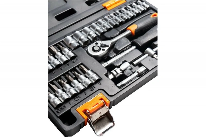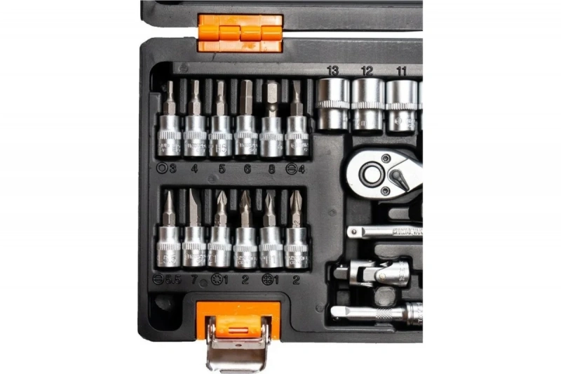 Головки и комбинированные ключи изготовлены из хромованадиевой стали, придающей инструменту высокую твердость и легкость. Биты, биты-вставки и отвёртки производятся из стали S2, улучшающей характеристики крутящего момента и твёрдости. Все наборы упакованы в ударопрочный кейс, изготовленный из жесткого противоударного пластика, с металлическими застёжками. Повышенные показатели прочности, крутящего момента и износостойкости.