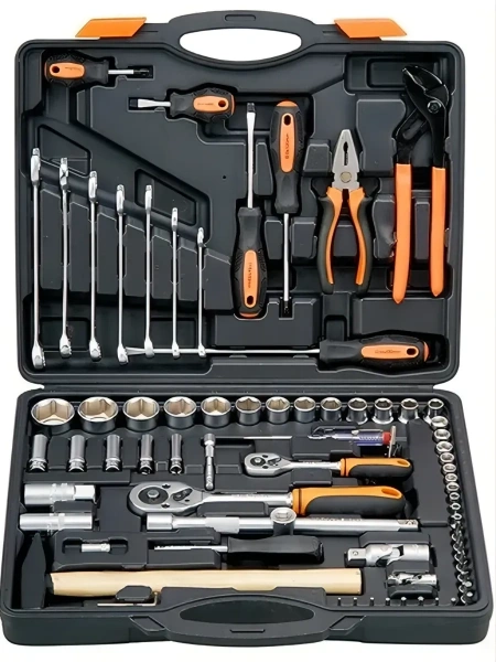 Ищете надёжный набор инструментов для дома в чемодане? Этот комбинированный набор инструментов включает всё необходимое: отвёртки (плоские и крестовые), биты, торцевые головки, гаечные ключи, плоскогубцы, молоток и другие полезные элементы — всего 75 предметов, уложенных в прочный пластиковый кейс с удобной ручкой.