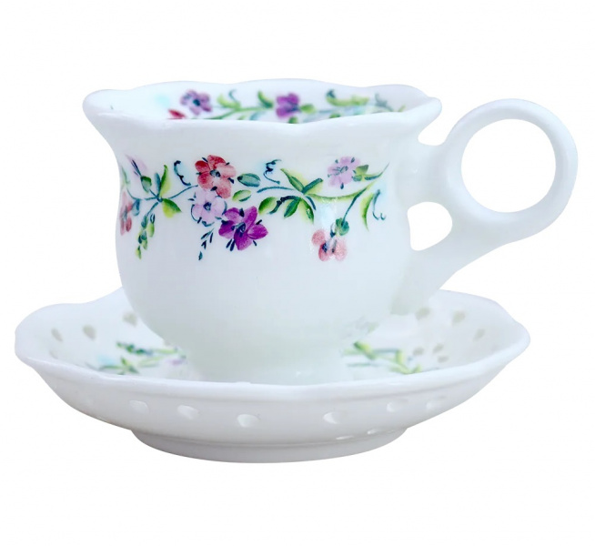 Изящная кофейная пара "Чабрец" приглянется всем любителям уюта и красоты. Декорирована поглазурной росписью с изображением цветущего чабреца. Такое изделие идеально впишется в вашу сервировку стола и послужит необычным подарком с Донской земли. Ручная работа.