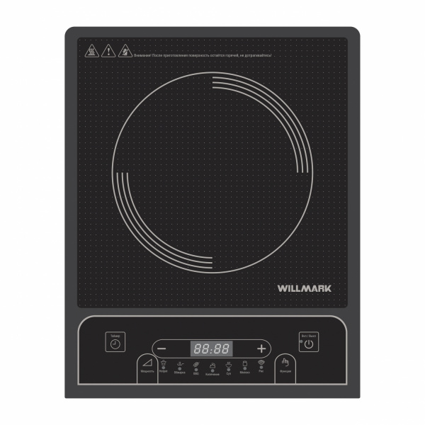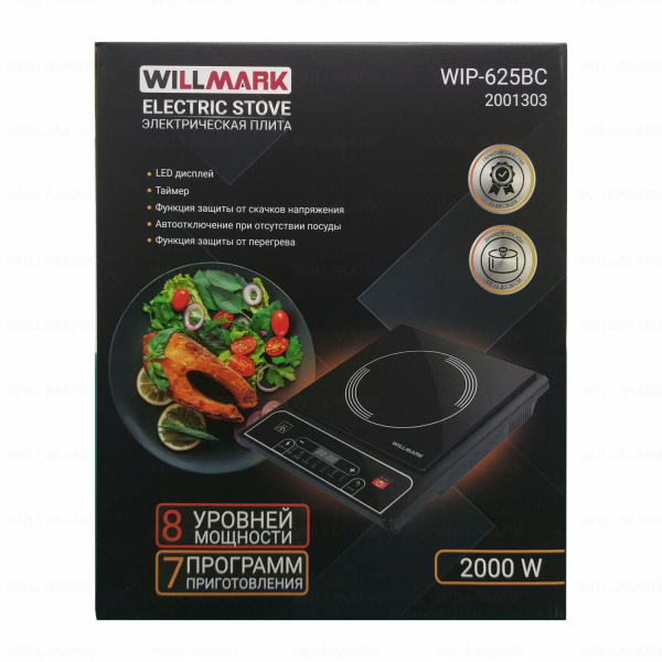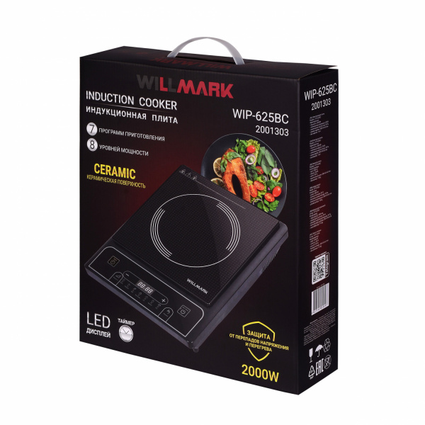 Конфорка мощностью 2000Вт с легкостью заменяет полногабаритную плиту. Таймер, встроенные программы приготовления, простое и понятное кнопочное управление облегчат процесс готовки и сделают его наиболее приятным для хозяйки или хозяина кухни. Функция автоотключения при отсутствии посуды и защита от перегрева обеспечат безопасность для всех членов семьи в процессе приготовления. Надежная и сверхпрочная стеклокерамическая поверхность выдержит до 10кг на каждой конфорке и откроет еще больше возможностей для самых изысканных блюд. Настольная индукционная плитка WILLMARK WIP-625BC – Ваш надежный помощник!