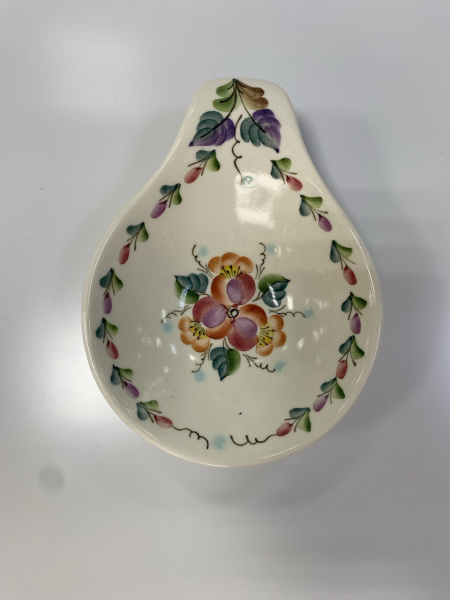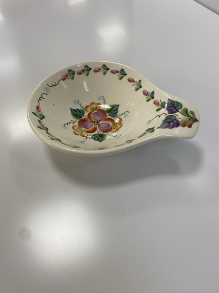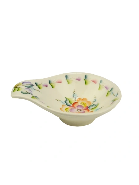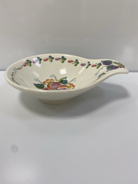 Небольшая плошка, расписанная нежной цветочной росписью, отлично подойдет под варенье, мед, сметану, джем или другое лакомство. Плошка входит в состав набора для блинов "Воскресенье", состоящий из блинницы, подтарельников и двух плошек разного размера. Обратите внимание на необычную форму изделия, которое создает оригинальный и изящный вид.