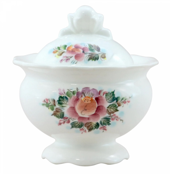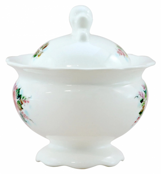 Сахарница — неотъемлемый элемент любого чаепития. Изделие декорировано подглазурной росписью с изображением нежных цветочков, за счет пастельных оттенков сахарница отлично впишется в любой кухонный интерьер. С ней обычное чаепитие превратиться в настоящий праздник.