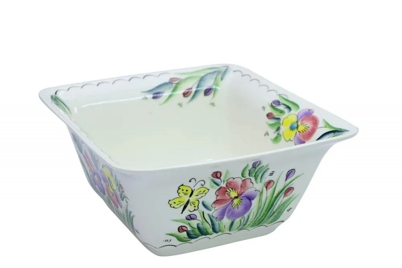 Для красивой сервировки стола и необычной подачи салатов рекомендуем обратить внимание на этот набор. Он состоит из пяти салатников квадратной формы разных размеров. Декорированный яркой, весенней, подглазурной цветочной росписью, такой набор станет приятным подарком любой хозяйке и будет долго радовать родных и близких превосходным качеством и прекрасным дизайном. Обратите внимание на компактное и удобное хранение салатников.