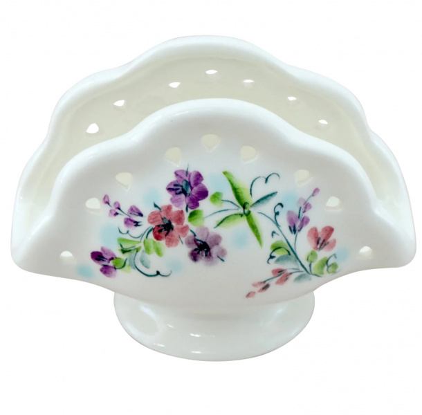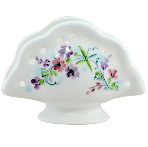 Рекомендуем обратить внимание на салфетницу "Чабрец". Изделие декорировано подглазурной росписью с изображением цветений чабреца, завершает лаконичный образ художественная вырезка. Выглядит очень нарядно и празднично.