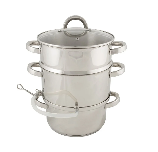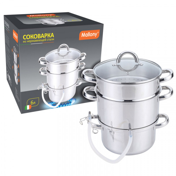 Соковарка из нержавеющей стали Mallony JM-22/6L 6л, д. 22см 981040 используется для тепловой обработки фруктов и овощей.