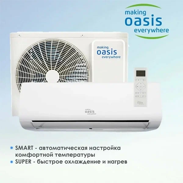 Сплит-система Oasis H-7 (Оазис 07) — идеальное решение для комфортного микроклимата Кондиционер 09 от бренда Oasis — это компактная и энергоэффективная сплит-система, рассчитанная на помещения площадью до 27 м². Идеально подходит для дома, офиса или квартиры, сочетая инновационные технологии и надежность.