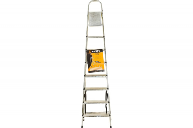 Стремянка используется в быту. Имеет восемь широких рифленых ступенек.