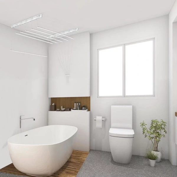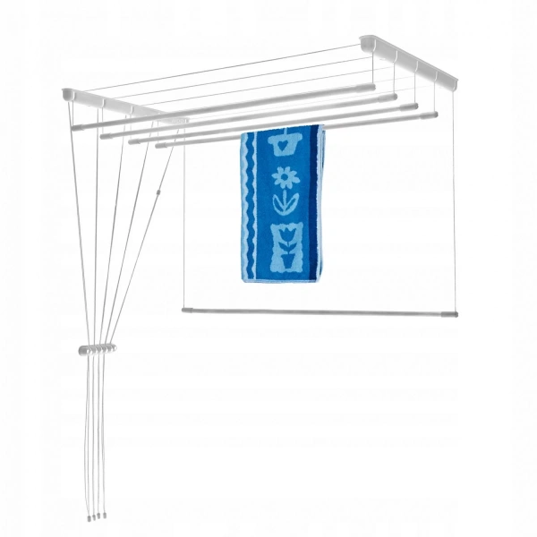 Стержни, на которые развешивается белье, опускаются до нужного уровня в зависимости от роста человека.