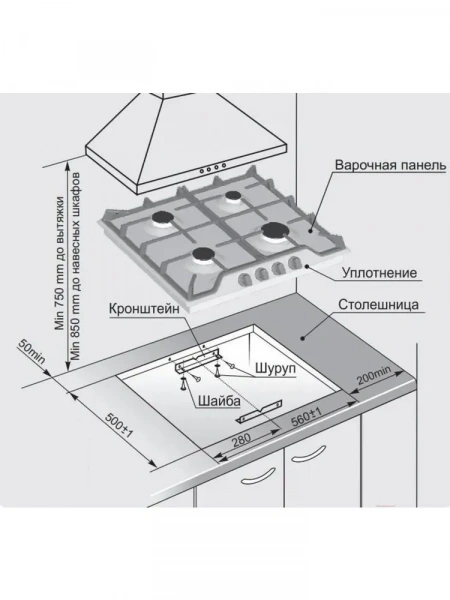 | Размеры монтажного проема, ШxГxВ | 50 х 56 см |