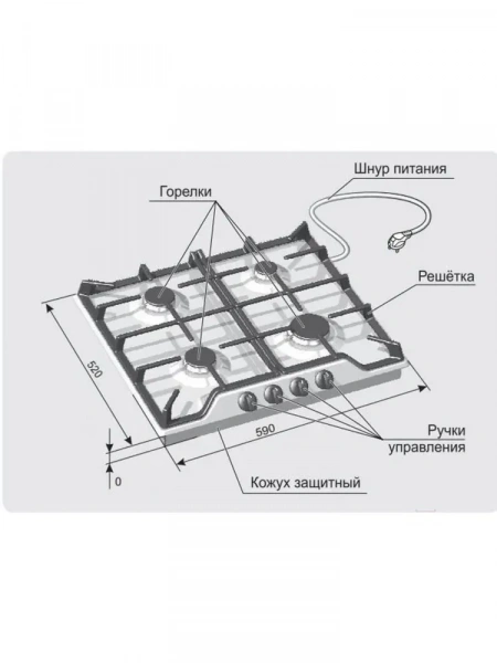 | Тип панели | газовая варочная поверхность |