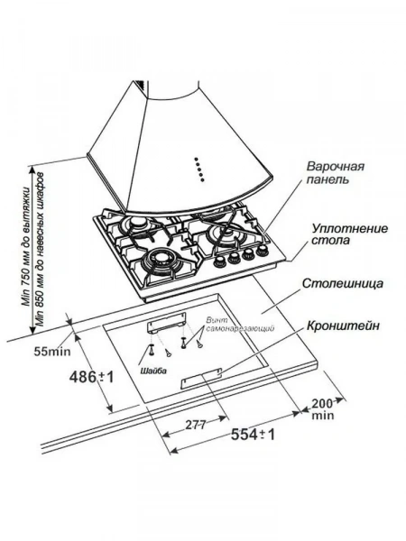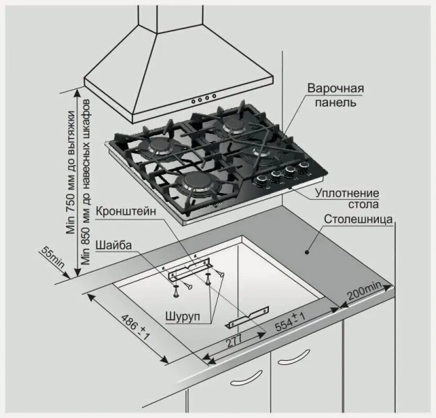 | Размеры монтажного проема, ШxГxВ | 55.4 х 48.6 см |