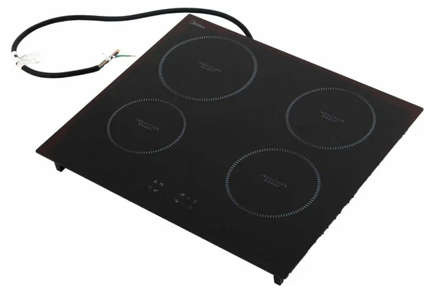 Варочная панель MIDEA MIH64100 (кер.). Индукционная варочная поверхность, ширина 60 см, 4 индукционные зоны, функция Booster, сенсорное управление, 9 уровней мощности, таймер, индикаторы остаточного тепла, функция "Защита детей", стеклокерамика, цвет - черный, дизайн рамки - без рамки