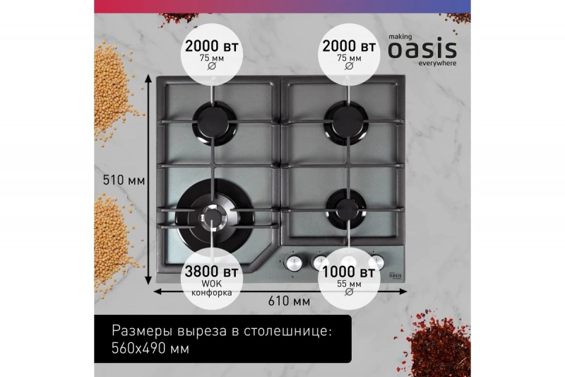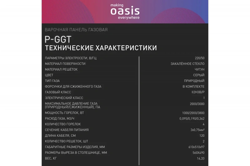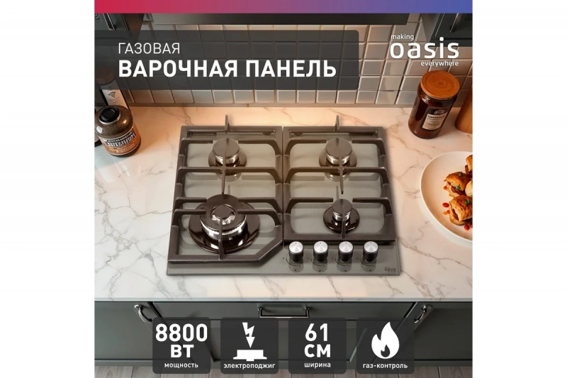 Встраиваемая газовая панель making Oasis everywhere P-GGT – выбор тех, кто любит готовить. Стильный серый цвет и функциональность будут отличным дополнением для вашей кухни.