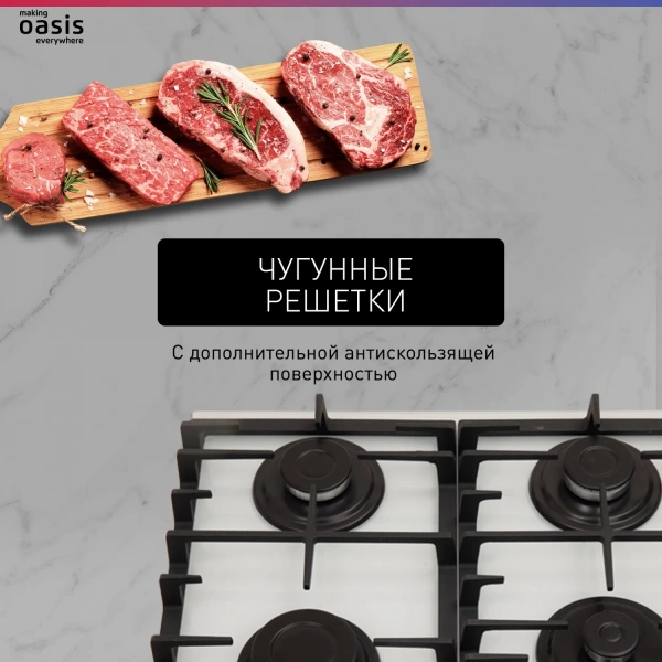 Все газовые варочные панели «making Oasis everywhere» оснащены системой автоподжига и «Газ-контроля» для безопасного и комфортного использования в течение всего срока эксплуатации прибора. Линейка газовых варочных панелей представлена стеклянными и металлическими моделями, которые подойдут под дизайн любой кухни.