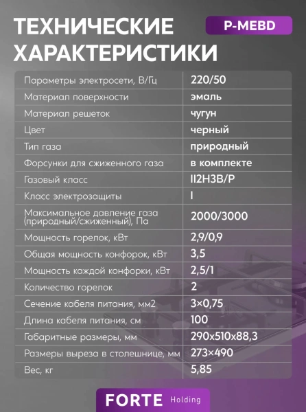 | Количество конфорок | 2 шт. |