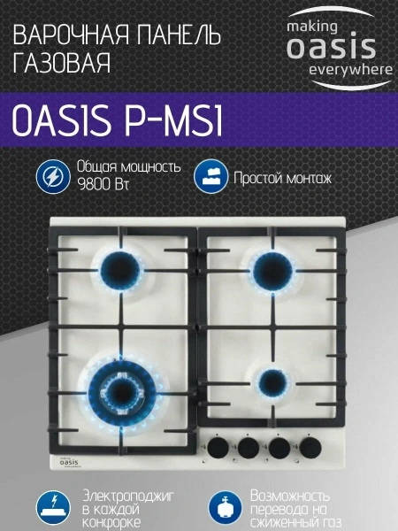 Газовая варочная панель making Oasis everywhere — это незаменимый помощник на кухне и главное устройство для приготовления ваших любимых блюд. Поверхность из эмали выглядит аккуратно и подойдёт для большинства кухонных интерьеров.