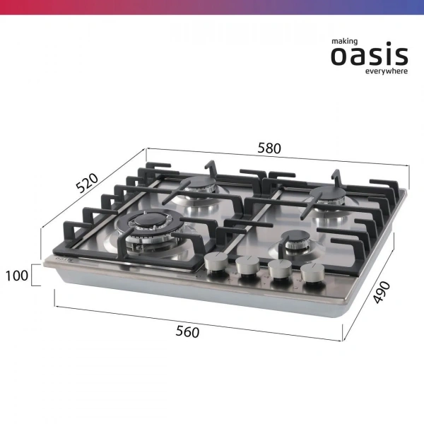 Газовая варочная панель making Oasis everywhere — это незаменимый помощник на кухне и главное устройство для приготовления ваших любимых блюд. Поверхность из нержавеющей стали не боится коррозии и механического воздействия.