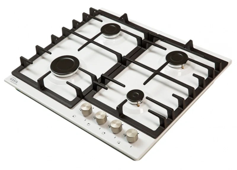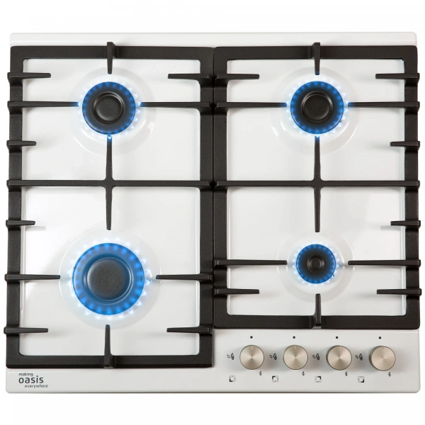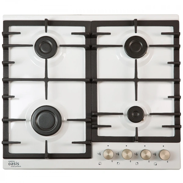 Преимущество газовых варочных панелей состоит в существенной экономии и простоте эксплуатации, кроме того газовые горелки очень быстро нагреваются, создавая равномерный прогрев продуктов. Все газовые варочные панели ''making Oasis everywhere'' оснащены системой автоподжига и ''Газ-контроля'' для безопасного и комфортного использования в течение всего срока эксплуатации прибора. Линейка газовых варочных панелей представлена стеклянными и металлическими моделями, которые подойдут под дизайн любой кухни. Цвет белый, металл, чугунная решетка, автоматический розжиг, газ-контроль, 4 газовые конфорки, ширина варочной поверхности 60 см.