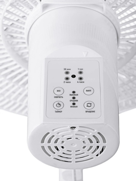 КОМПЛЕКТНОСТЬ 1. Передняя защитная решетка - 1 шт. 2. Гайка крепления лопастей - 1 шт. 3. Лопасти - 1 шт. 4. Гайка крепления задней решетки - 1 шт. 5. Задняя защитная решетка - 1 шт. 6. Декоративная накладка на решетку - 1 шт. 7. Моторный блок с панелью управления - 1 шт. 8. Пульт управления - 1 шт. 9. Хомут крепления решетки - 1 шт. 10. Выдвижная штанга - 1 шт. 11. Крепление стойки - 1 шт. 12. Стойка - 1 шт. 13. База - 1 шт. 14. Утяжелитель базы - 1 шт. 15. Винт крепления базы - 1 шт.