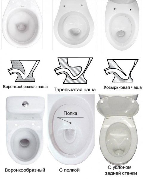 ➬Козырьковая форма – самая распространенная. Ее конструкция имеет небольшую платформу, которая переходит в воронку. Поэтому соблюдаются гигиенические нормы и отсутствуют брызги. Самая популярная и самая удобная.